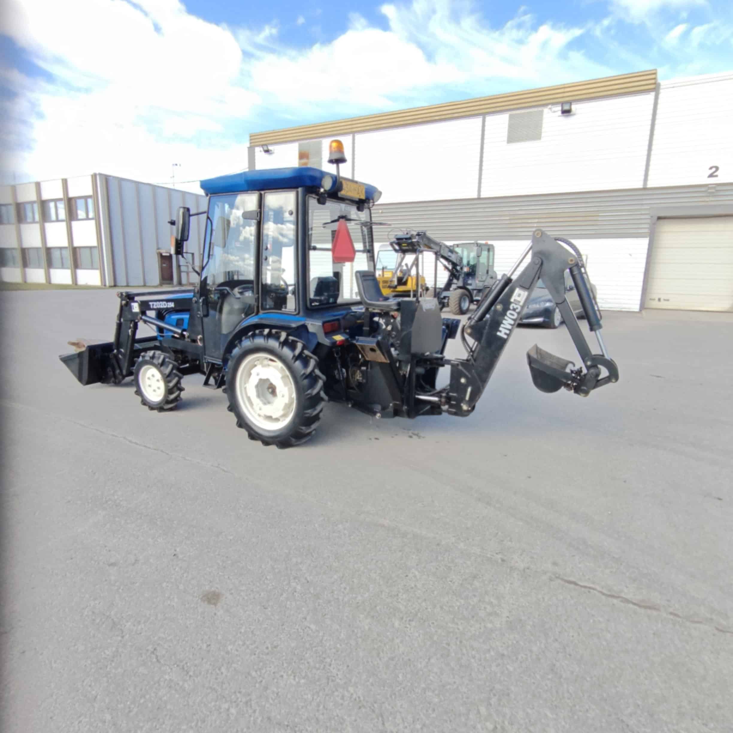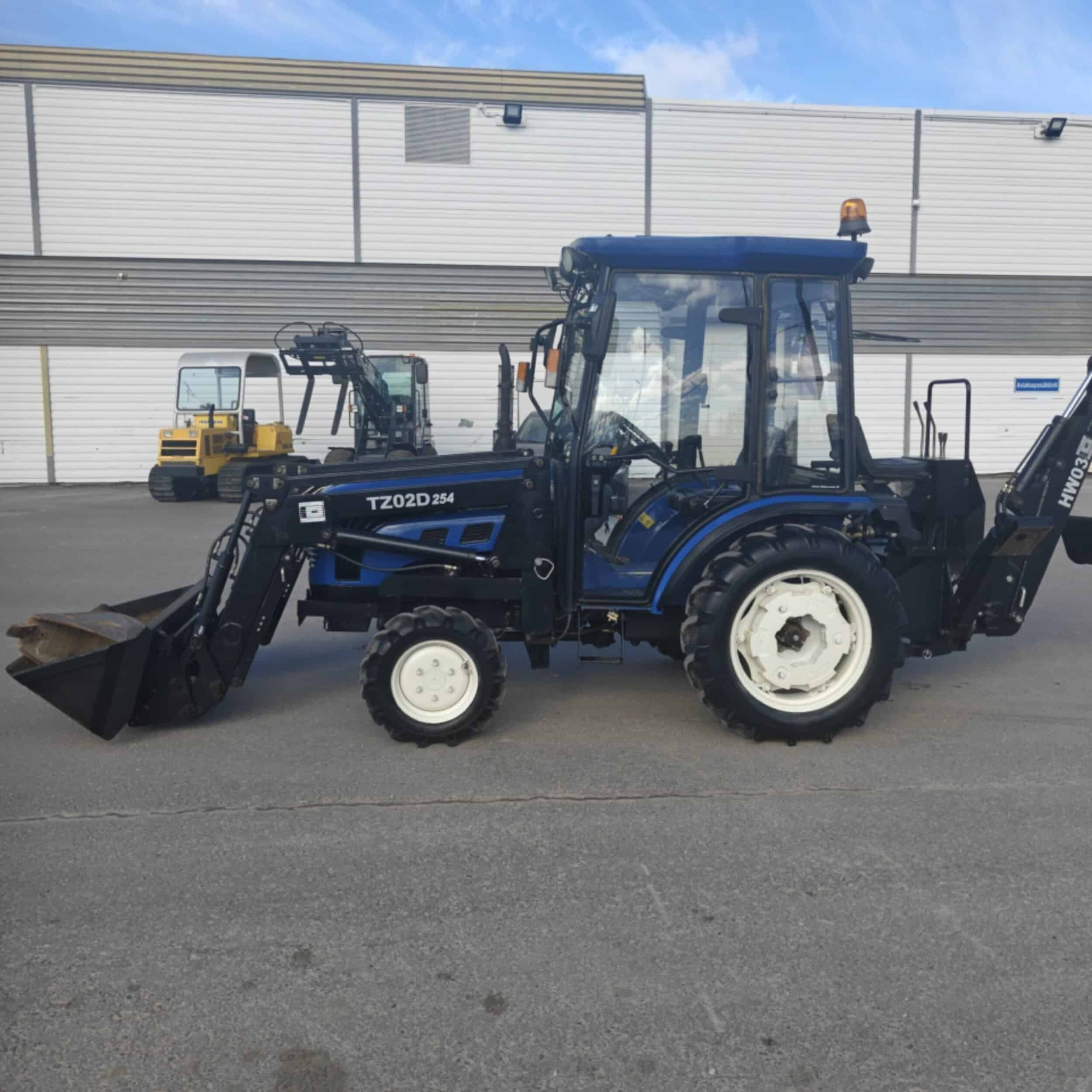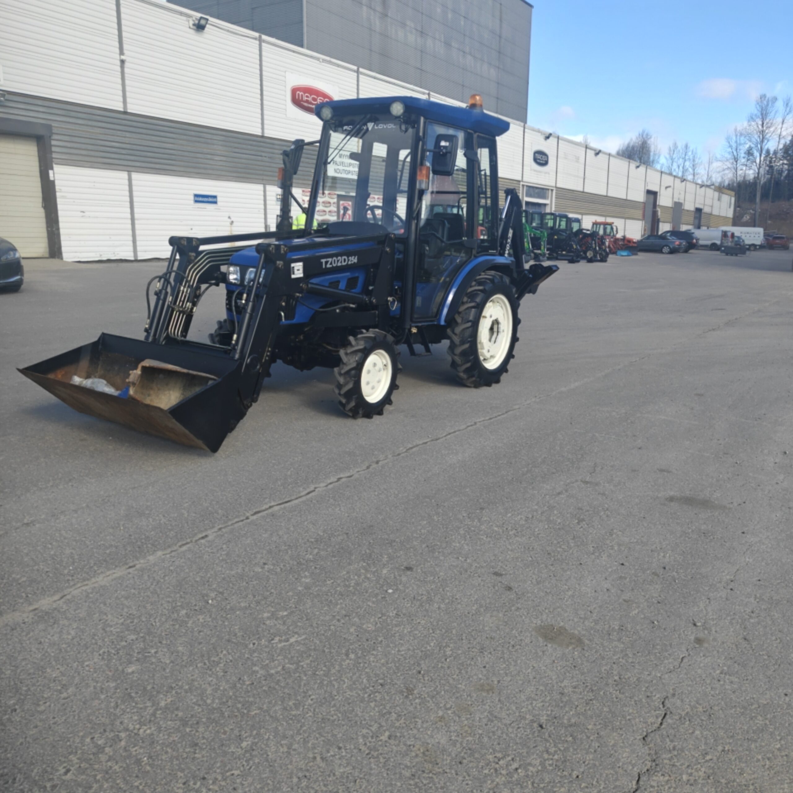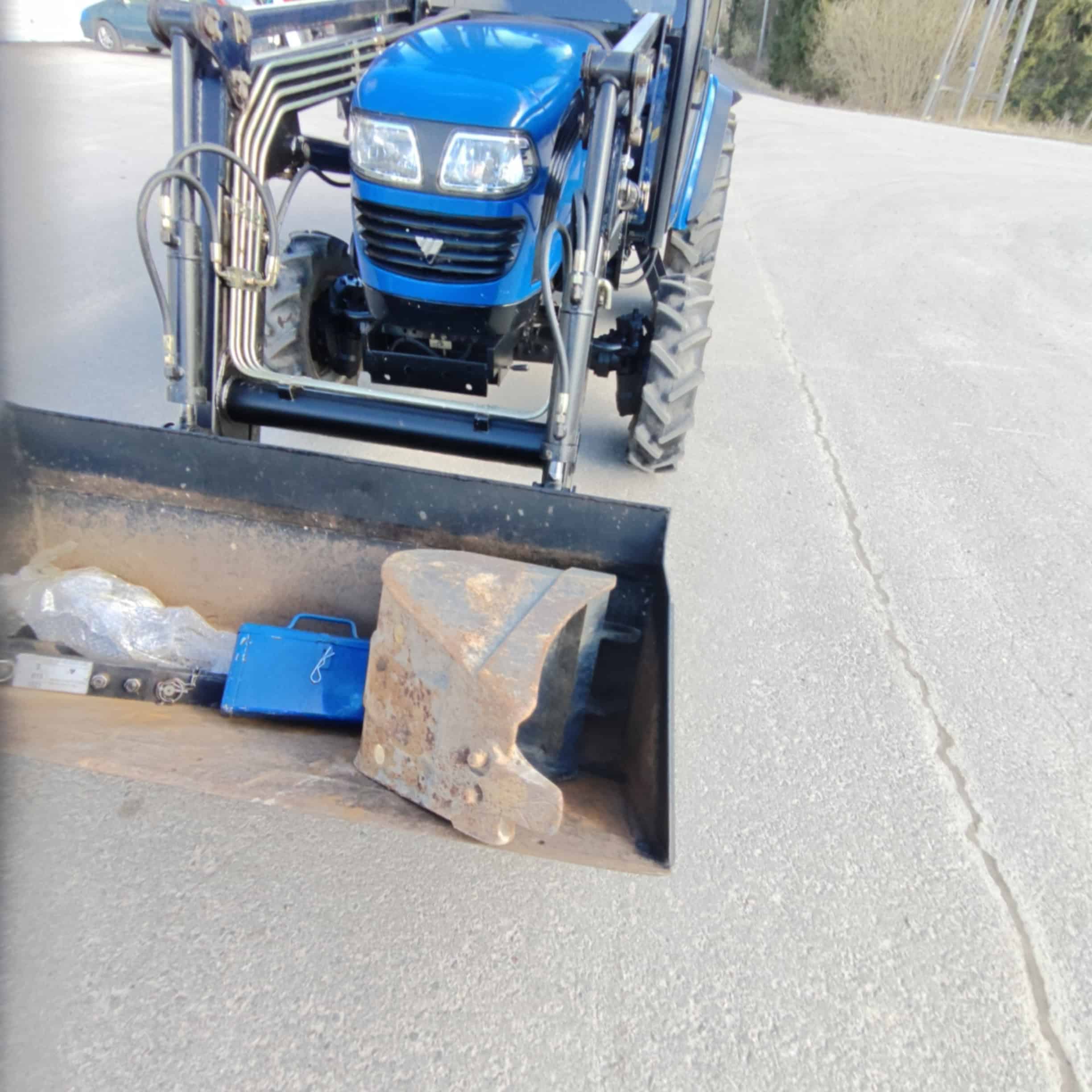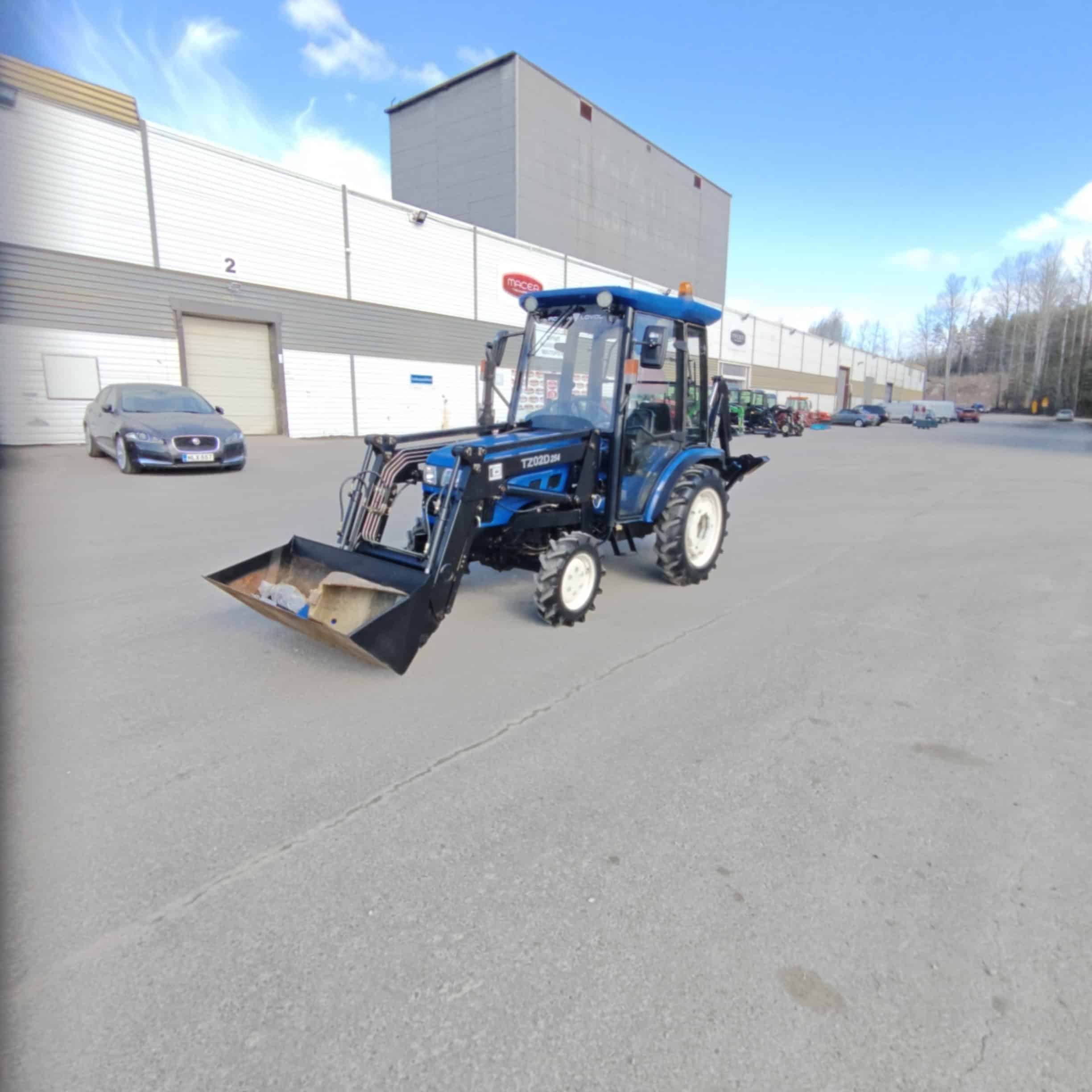 Siisti ja hienokuntoinen minitraktori etukuormaajalla ja kolmipiste tartunnalla.
