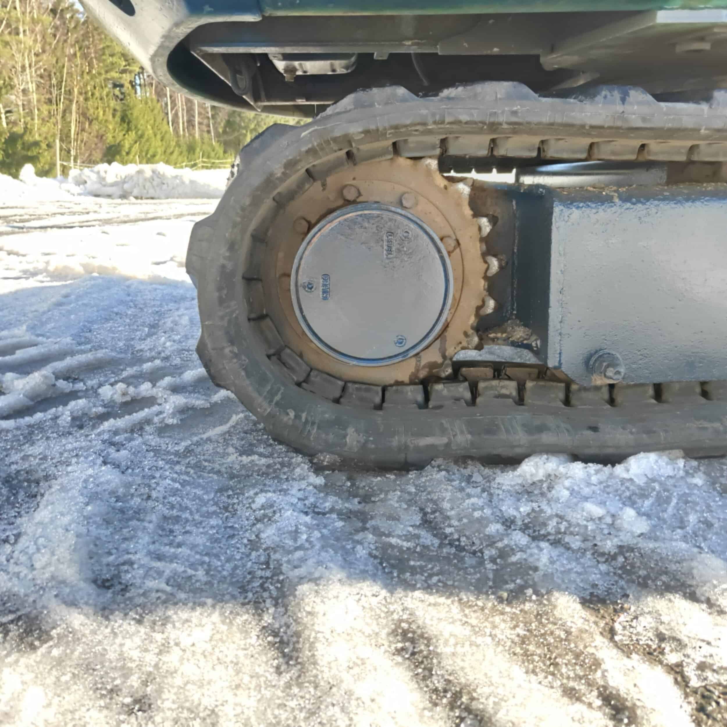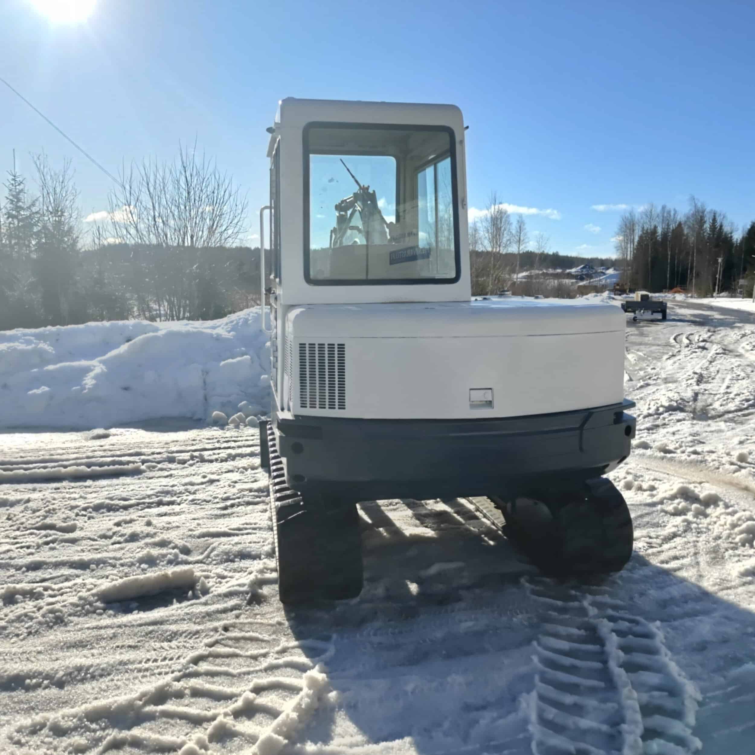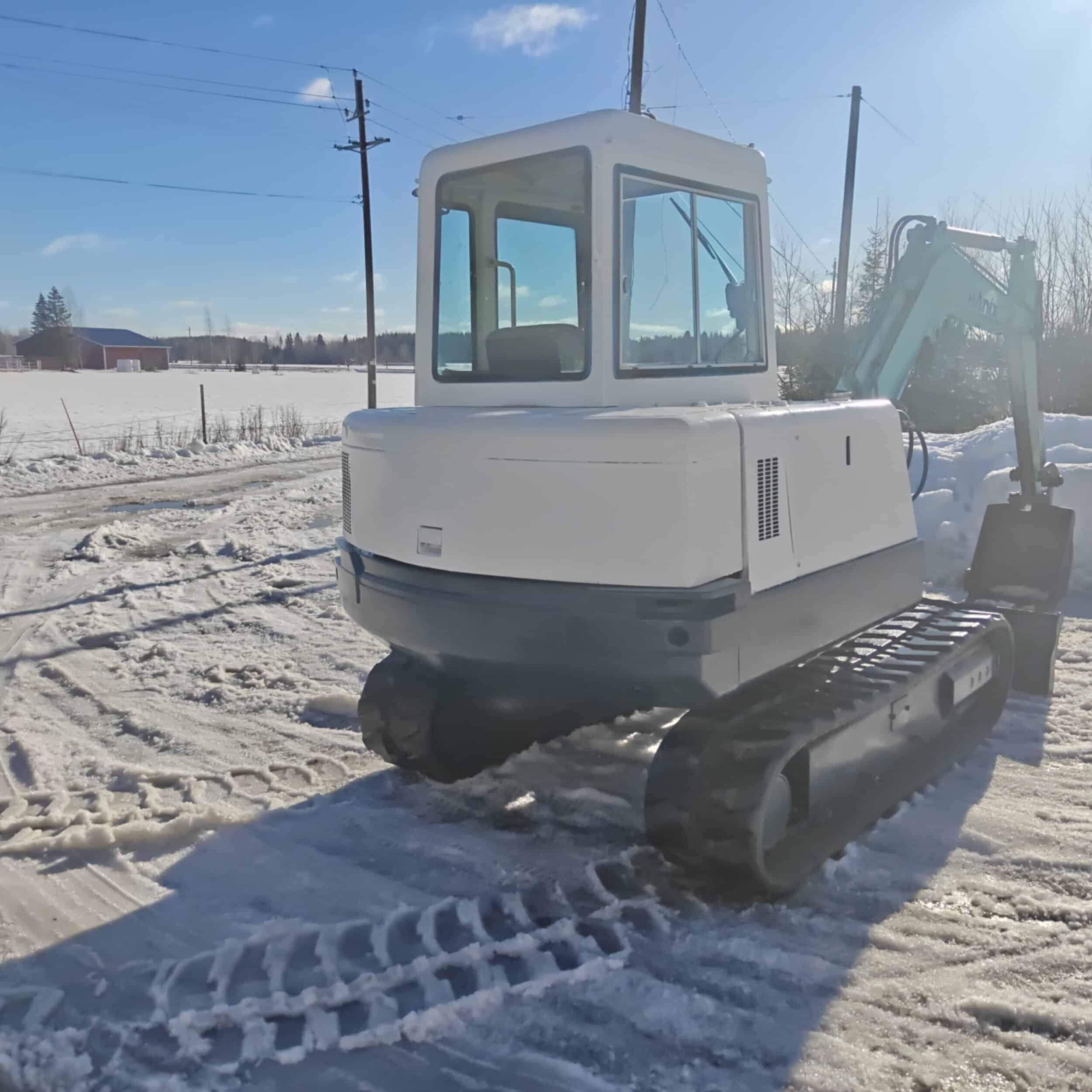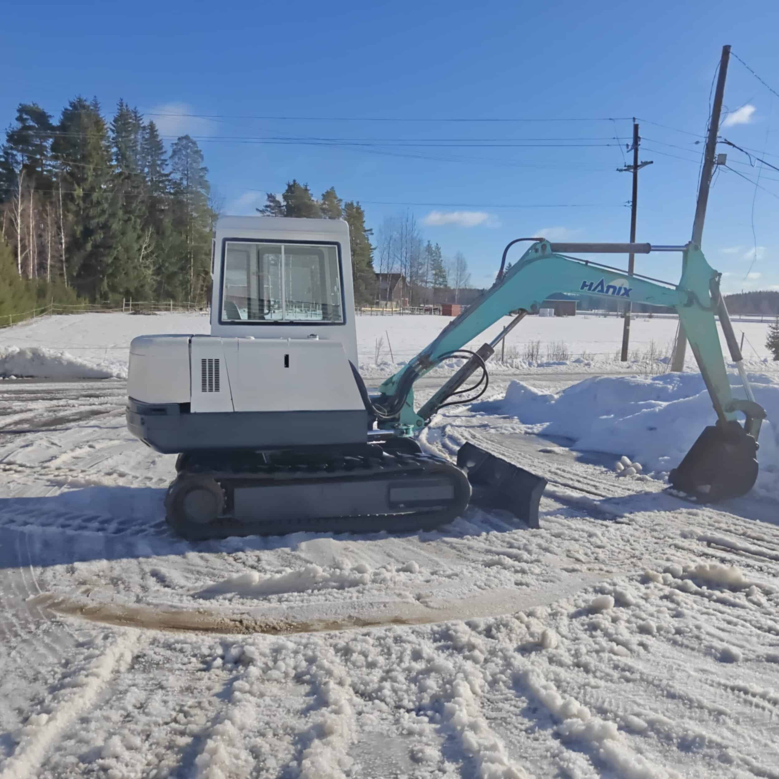 Näppärä ja varma kumitelainen Hanix minikaivuri tappikiinnitteisellä kauhalla ja toimivalla lämmityslaitteella.