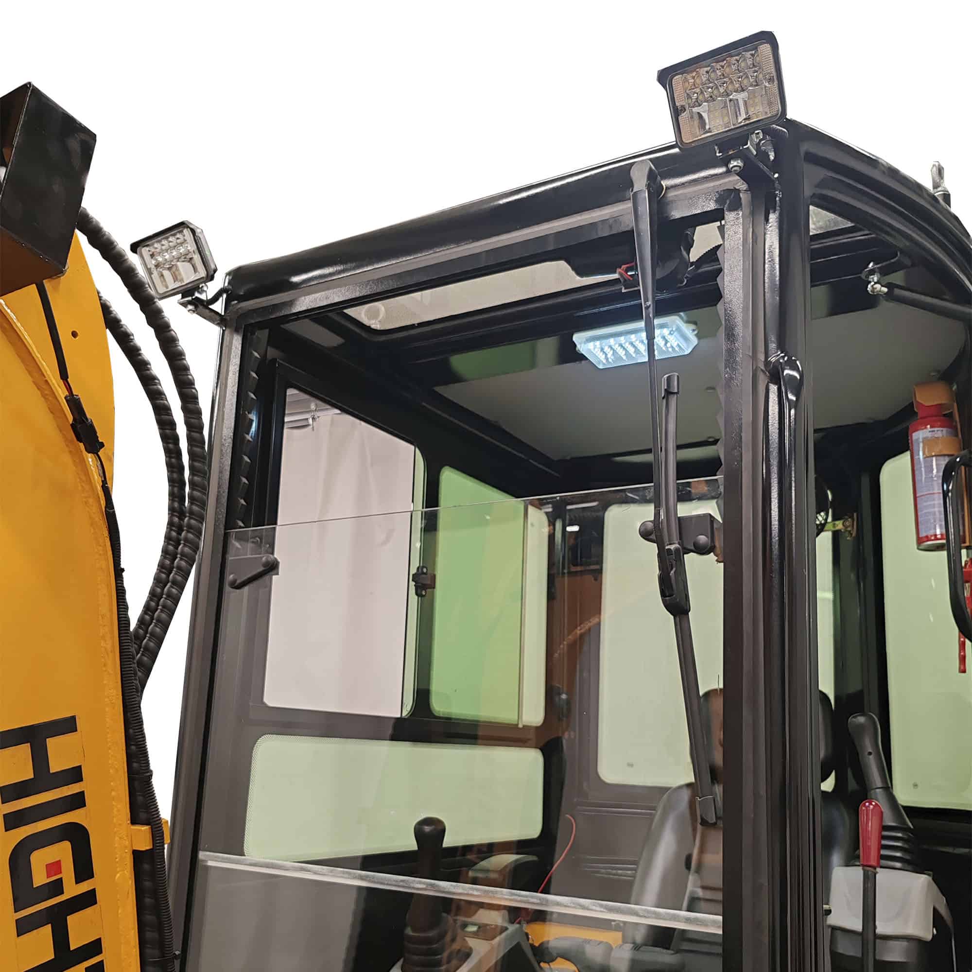 Tehokas valaistus puomissa sekä katolla lisäävät työskentely mukavuutta myös hämärissä ja pimeissä olosuhteissa.
