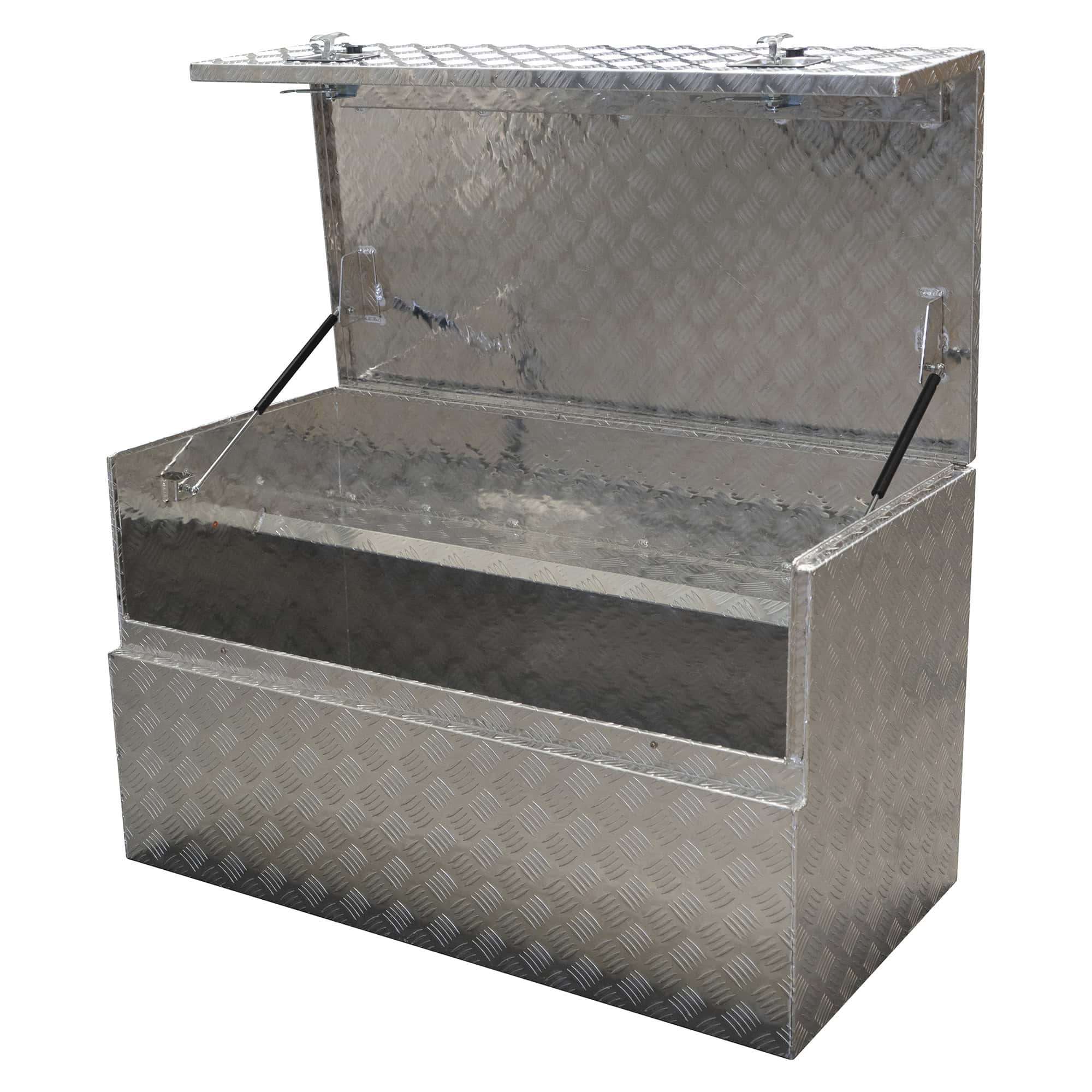 Työkalulaatikko on valmistettu aaltokuvioidusta alumiinilevystä, joka lisää rakenteen lujuutta ja jäykkyyttä ilman tarpeetonta lisäpainoa. Alumiini materiaalina on kevyt, korroosionkestävä ja helppohoitoinen. Työkalulaatikossa on lukittava kansi ja tukevat saranat.